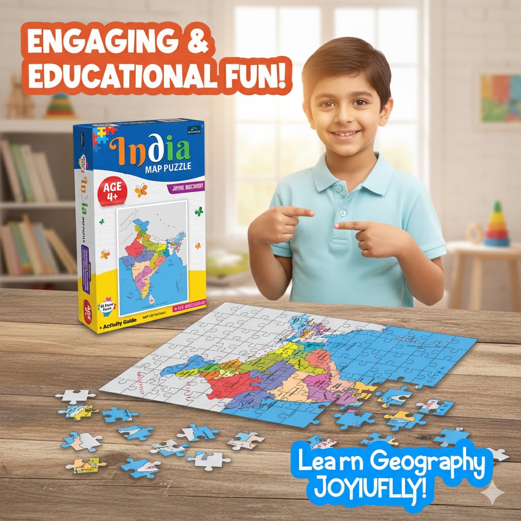 - .Educational Fun for All Ages: The India Map Jigsaw Puzzle is a great way to combine learning and fun, making it ideal for kids, students, and adults alike. It helps players explore the geographical layout of India, understanding the locations of various states, capitals, rivers, and geographical landmarks.