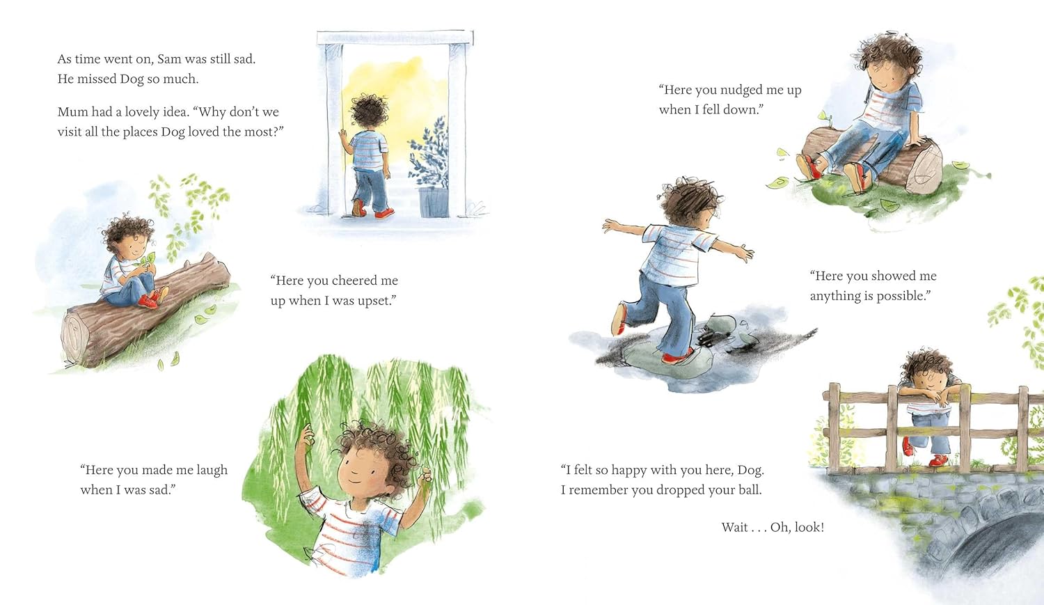 By remembering their happy times together, Sam faces sadness but finds joy again – and understands that Dog’s love and friendship are gifts that last forever.