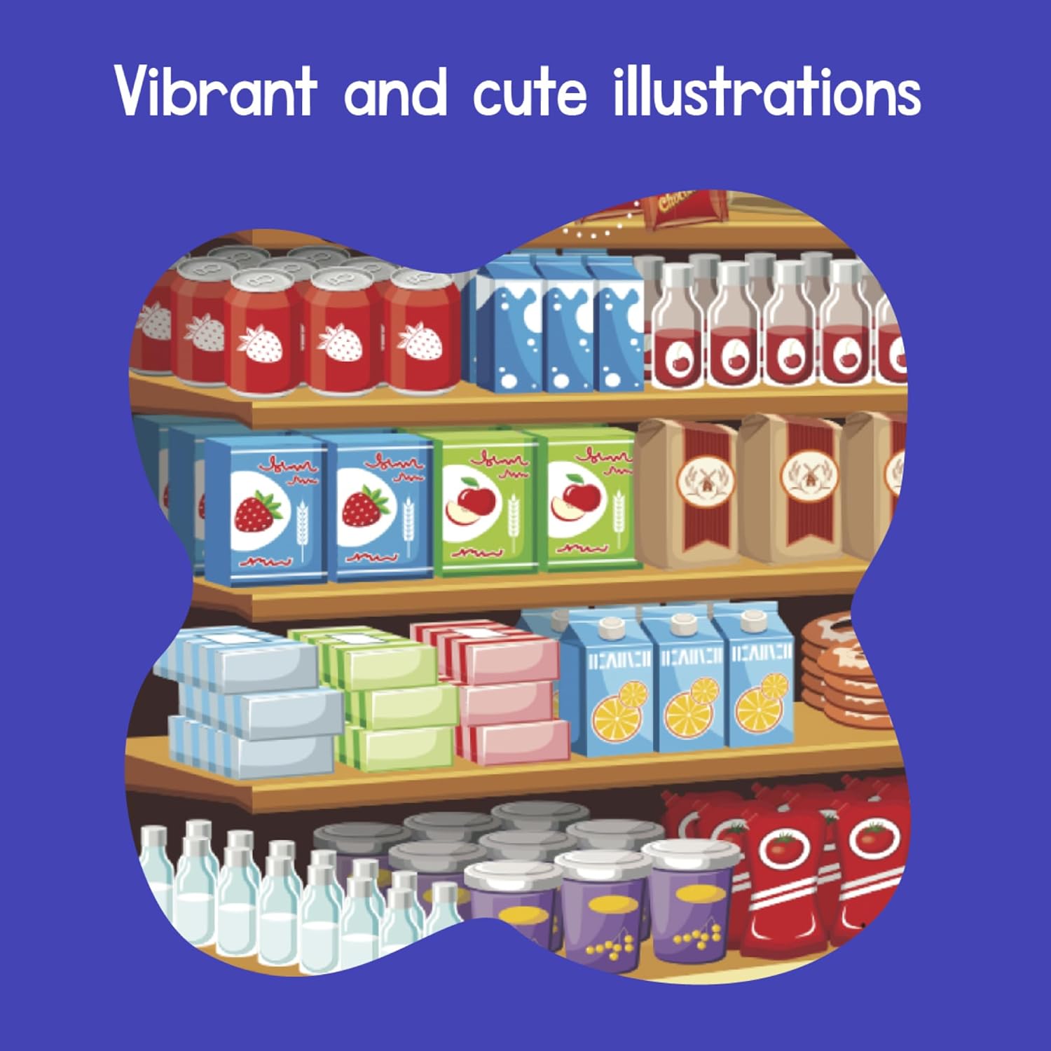 This book will help the little learners learn about different types of food items we eat. Each spread features different types of food items to look for and learn about
