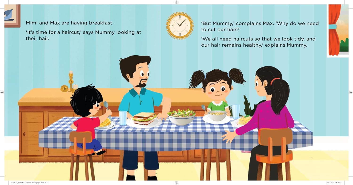 Time for haircut Mimi and Max visit the salon to cut their hair for the very first time. Join them as they learn all about haircuts and watch their hair go snip, snip snip! The Mimi and Max toddler series is a fantastic collection of storybooks designed to introduce your child to their first experiences through the sibling characters, Mimi and Max. Reading these engaging stories with your little one offers a fun and interactive way to explore and enjoy the first experiences of a child together.