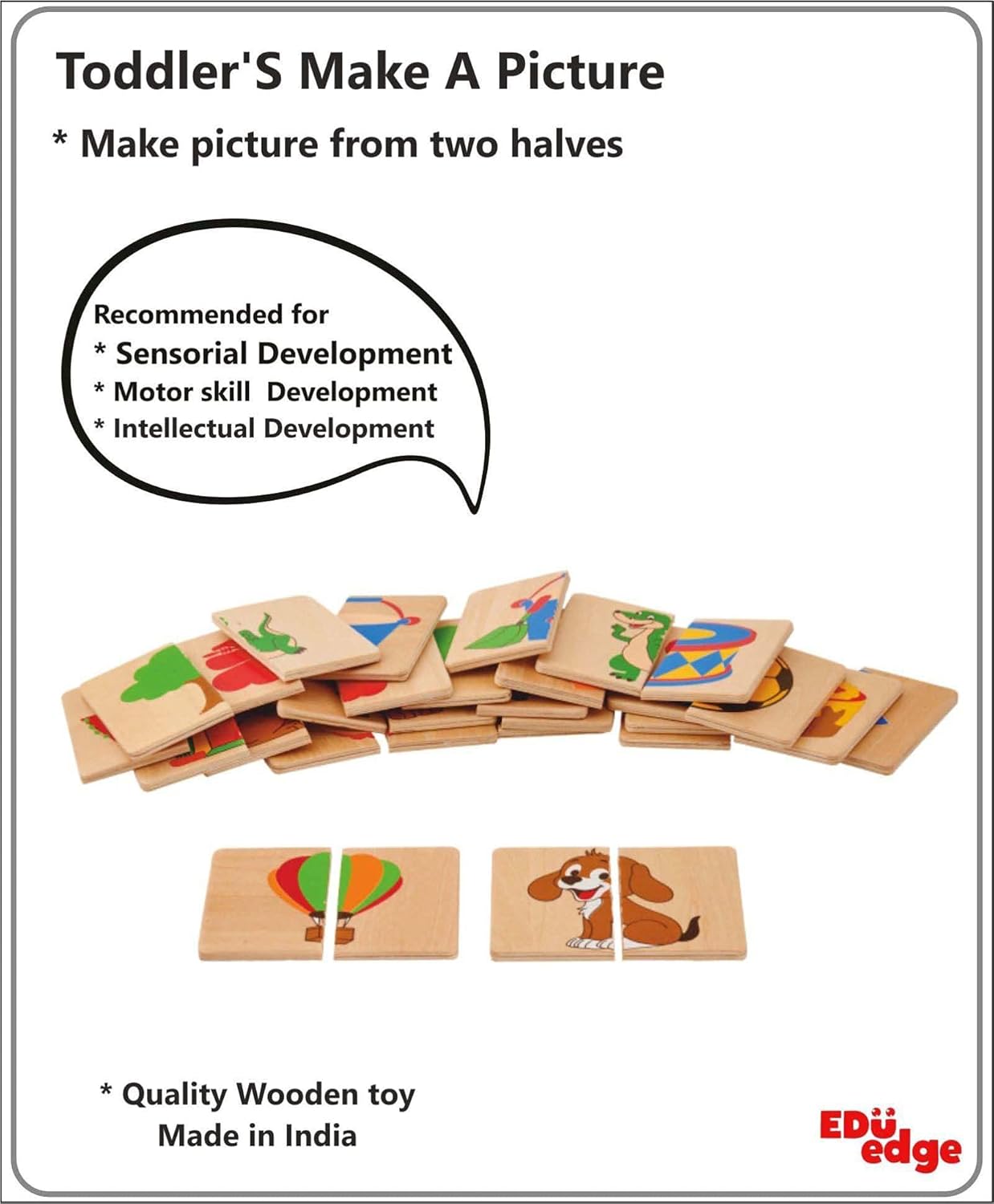 - Educational picture making toy :The set contains fifteen pictures cut in two parts. Match halves and complete pictures.