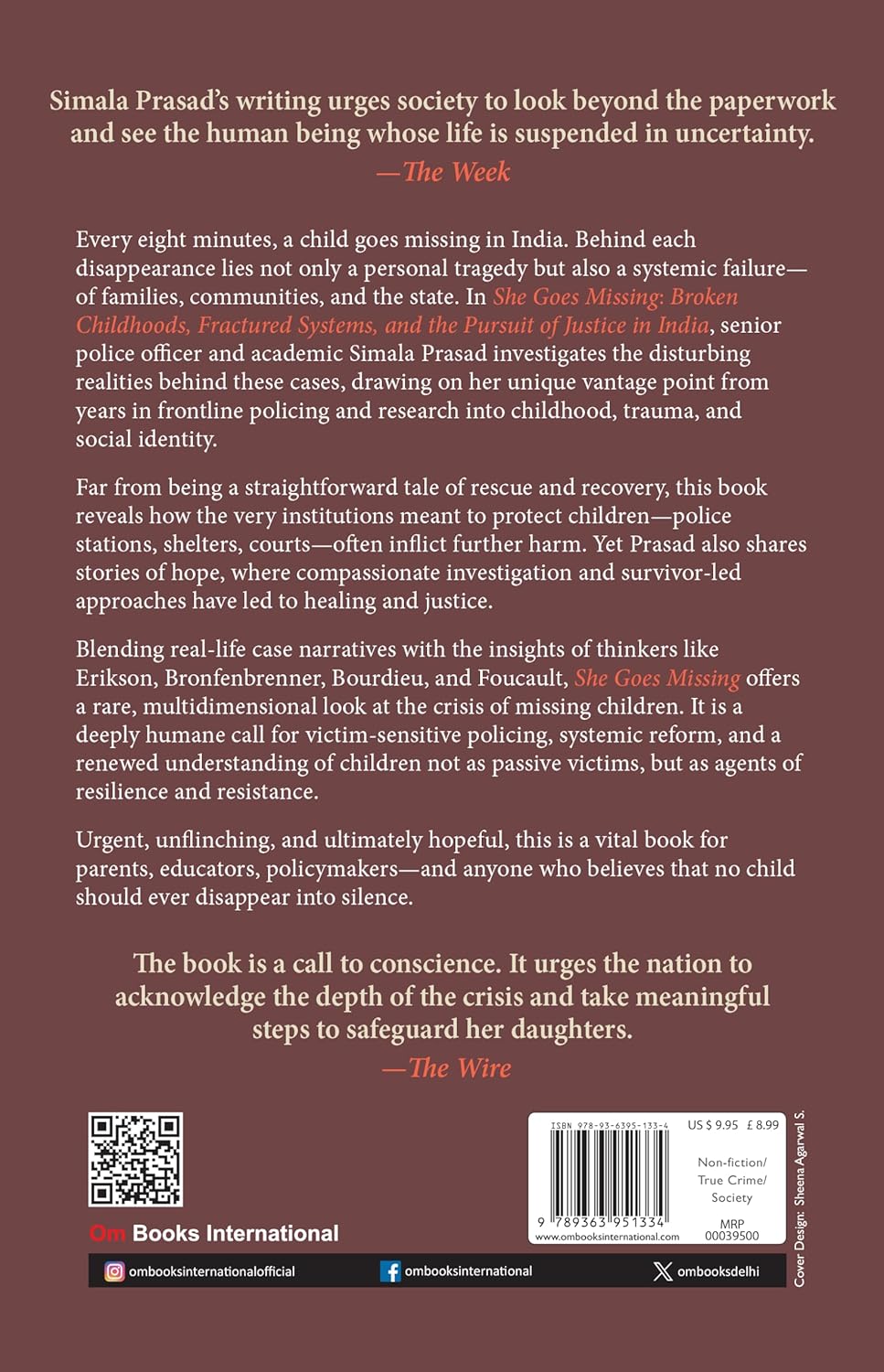 Every eight minutes, a child goes missing in India. Behind each disappearance lies not only a personal tragedy but also a systemic failure—of families, communities, and the state. In She Goes Missing: Broken Childhoods, Fractured Systems, and the Pursuit of Justice in India, senior police officer and academic Simala Prasad investigates the disturbing realities behind these cases, drawing on her unique vantage point from years in frontline policing and research into childhood, trauma, and social identity.