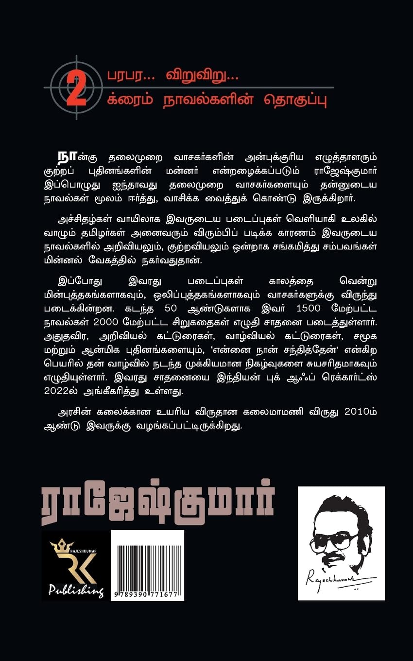 Two Crime thrillers of Novelist Rajeshkumar featuring in this Digest. க்ரைம் கதை மன்னர் ராஜேஷ்குமாரின் இரண்டு பரபர விறுவிறு க்ரைம் கதைகள், இந்த புத்தகத்தில் இடம்பெற்று உள்ளன,